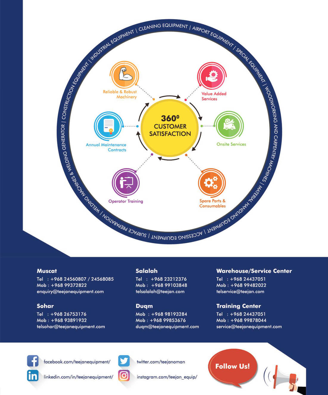 Teejan Equipment LLC is part of the multi-disciplinary Teejan Group of companies operating throughout the Sultanate of Oman, since 1974. Over three decades, Teejan Group has carved out an indisputable reputation, recognition and goodwill that has stood the test of time.